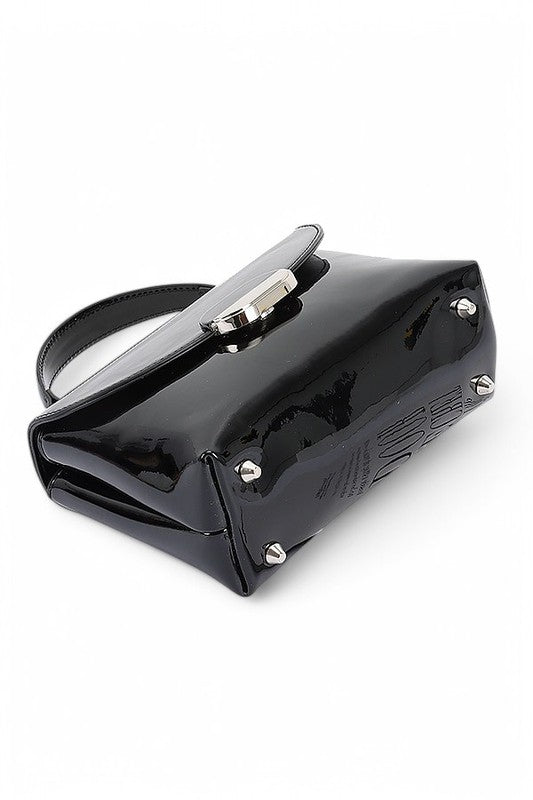 Patent Faux Leather Top Handle Crossbody Bag