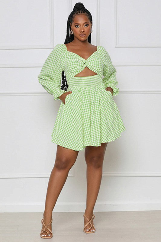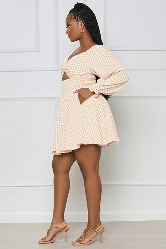 Details-Sexy summer dress, v-neckline, long sleeves, front bow-tie looks, cut-off front elasticized trim waist