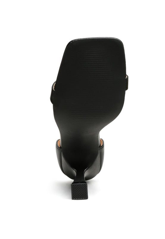 Faux Leather high heel sandal comes with metal chain with squared open toe Perfect for parties and casual occasions.